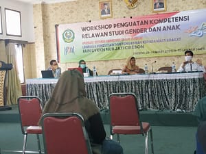 Pusat Studi Gender dan Anak (PSGA) IAIN Syekh Nurjati yang dikepalai oleh Naila Farah, M.Ag. kerap kali mengadakan workshop baik secara online maupun offline. Workshop kali ini diadakan secara offline dengan menerapkan Protokol Kesehatan. Sebagai upaya partisipasi SPI dalam kegiatan ini, Analis SPI, Dra. Elly Suherli, M.Pd., mendampingi kegiatan workshop yang dimoderatori oleh Farida Mahri, Ketua Pengurus Yayasan Wangsakerta Cirebon. Workshop dilaksanakan dalam dua hari (23-24 Maret 2021) yang bertempat di Aula Lt. 3 Rektorat IAIN Syekh Nurjati Cirebon. Pemateri untuk kegiatan ini diantaranya Siswo Mulyartono dari PUSAD Paramadina Jakarta dan Irma Martam, Psy. MPH. sebagai Mantan Direktur Pulih Institute Jakarta. Kegiatan ini merupakan salah satu upaya PSGA dalam meningkatkan kompetensi para relawan Studi Gender dan Anak untuk nantinya mampu menjadi konselor yang kompeten.